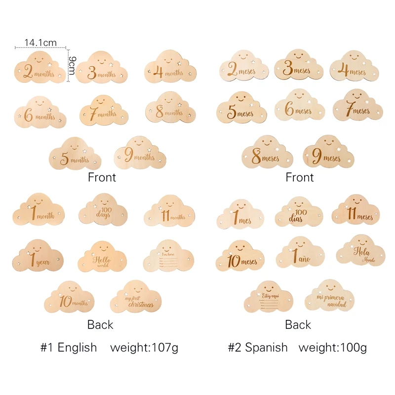 8pcs/set Wooden Baby Milestone Cards Cute Cloud Shape Milestone Memorial Monthly Baby Commemorativenir Newborn Photo Accessories