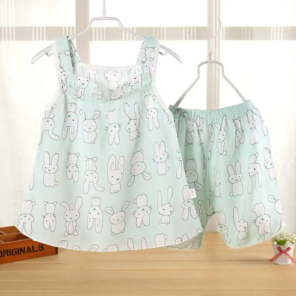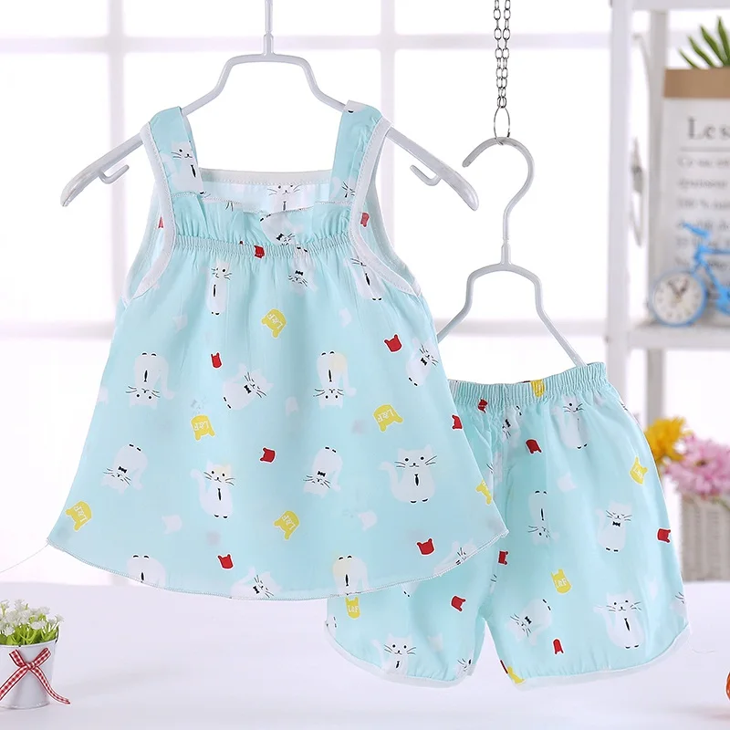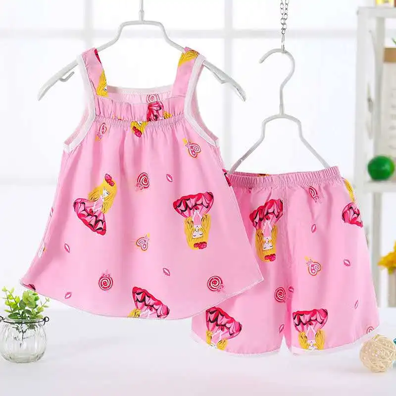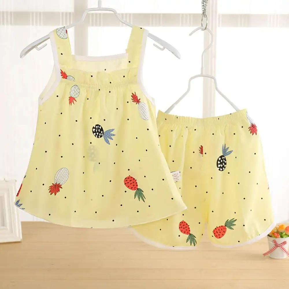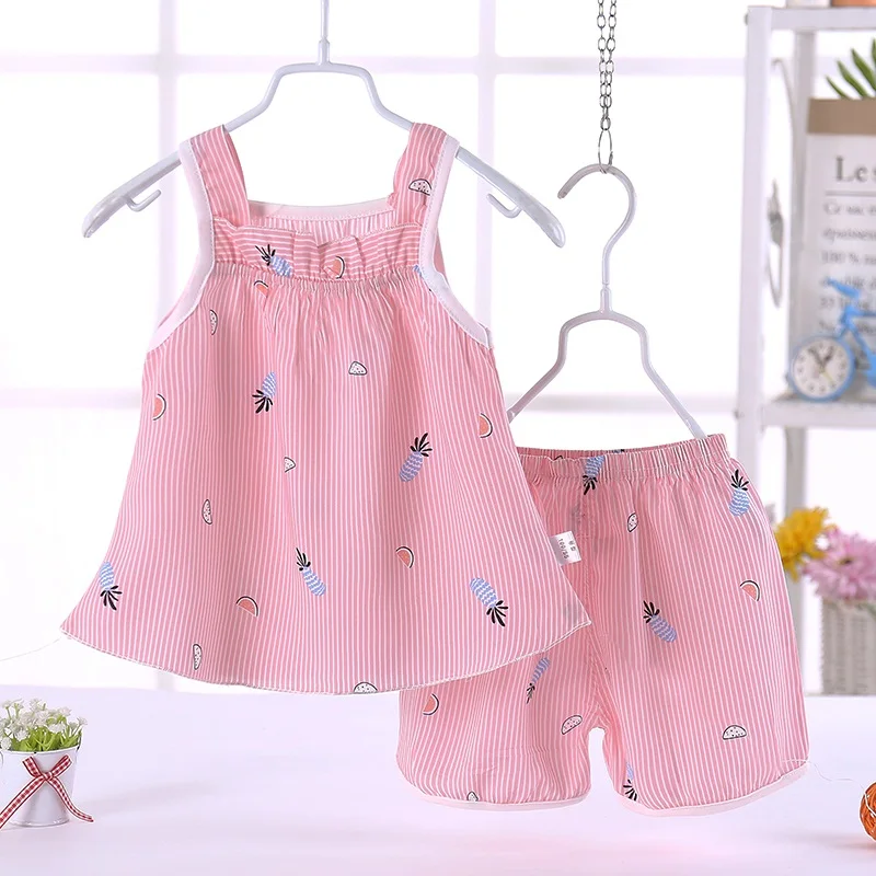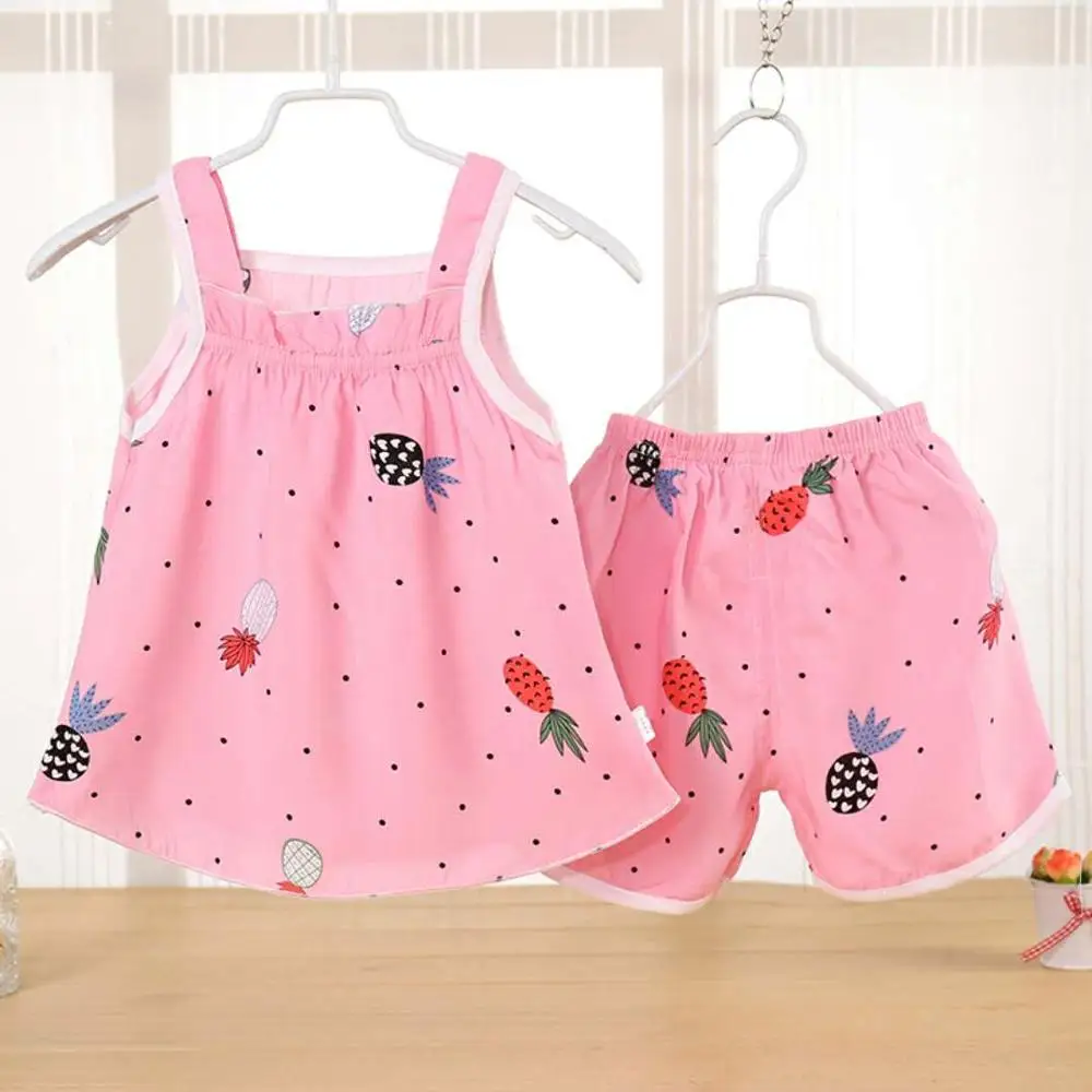 Free Shipping Summer Newborn Baby Girls Clothe Set Cartoon Print Kids Baby Vest+Shorts Suit 2Pcs Infant Baby Girls Print Clothe