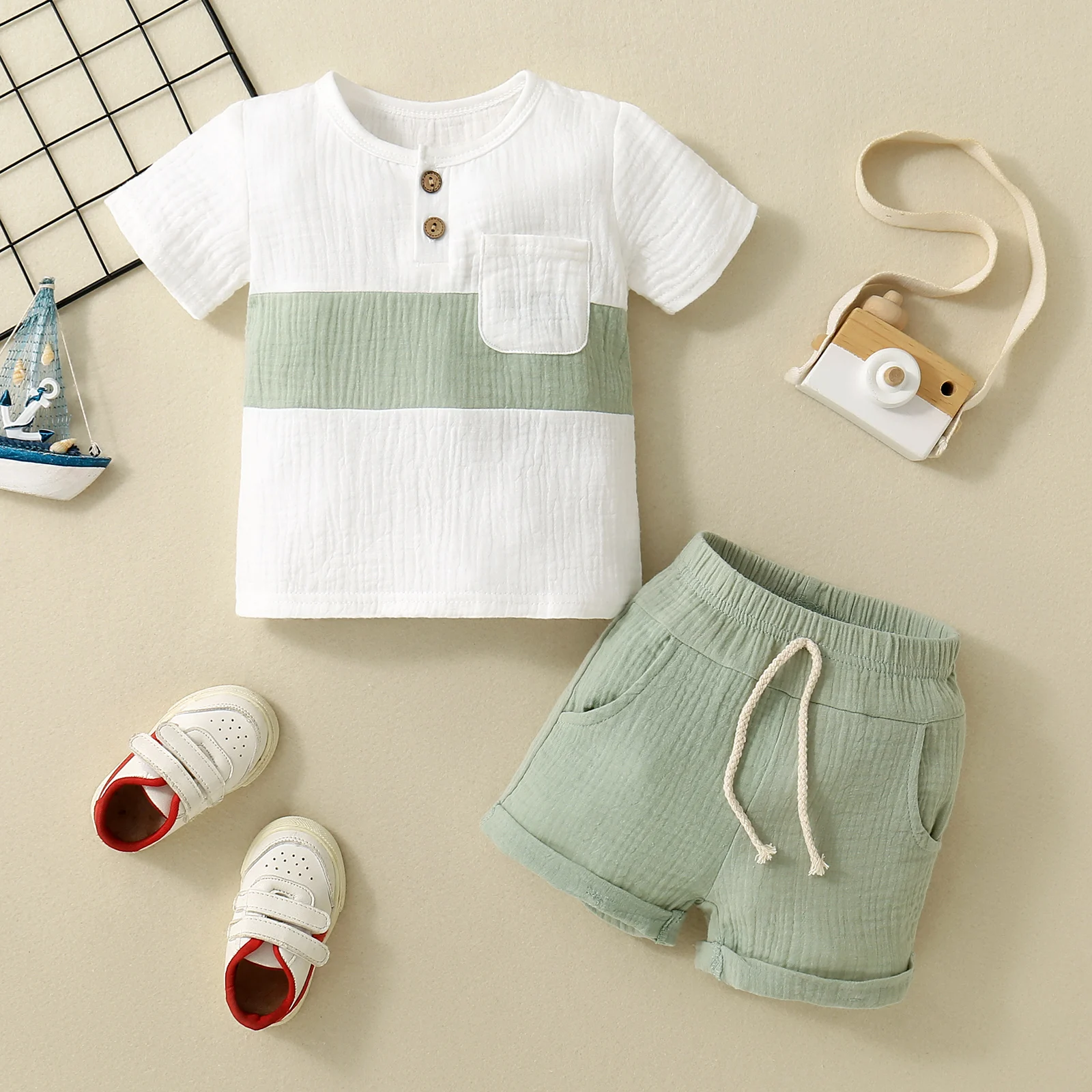 Infant Spring and Summer Festival Short Sleeve Unisex Patchwork Energetic Shorts Set Leisure Sports Series