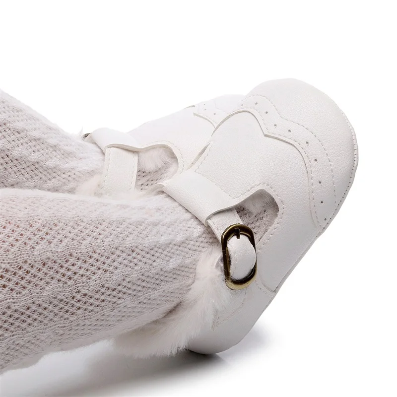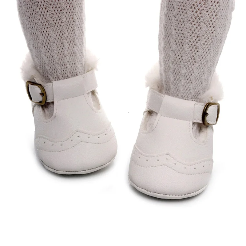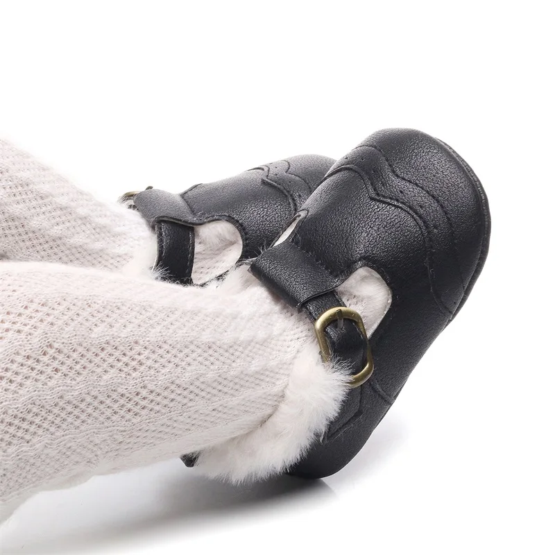 Baby Girl Princess Dress Shoes Winter Warm Mary Jane Flats Non-Slip Fleece Crib Shoes