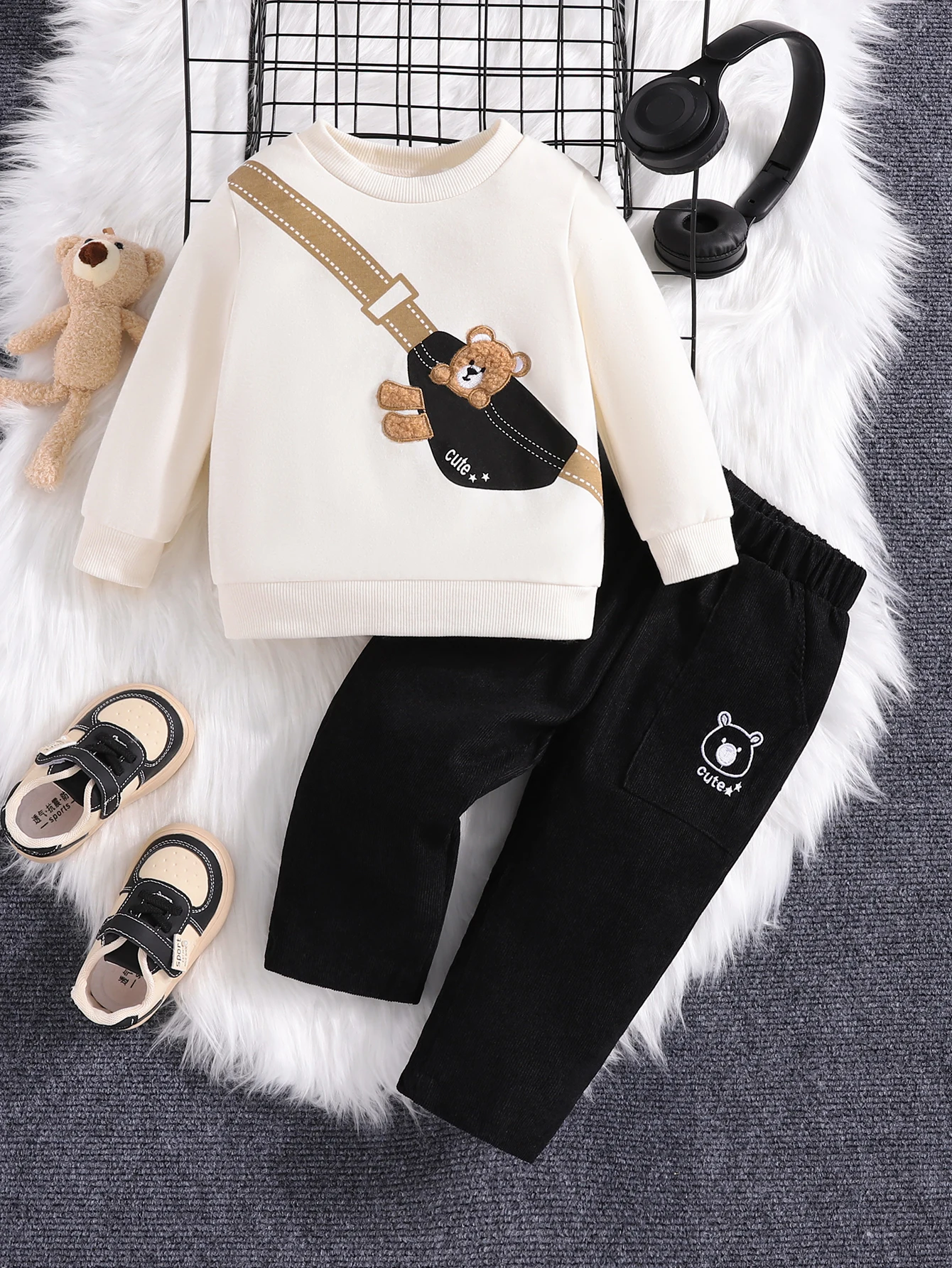 Winter Warm Baby Girl Clothes Set Cartoon Bear Long Sleeve Top+ Pant Infant Newborn 2Pcs Cute suits